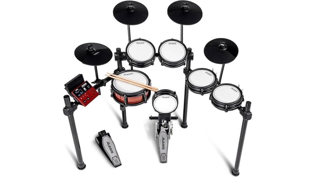 The Alesis Nitro Pro XL Drum Set stands as a beacon of innovation, blending lightweight design with realistic mesh drum heads—enhancing playability and sound variation. This compact instrument not only fits seamlessly into small spaces but also nurtures creativity, reminding users that growth, much like music, flourishes in confined environments. With customizable settings and an easy setup, it invites individuals to commence on a journey of skill development, embodying the harmonious interplay between technology and personal expression. What further insights await in this exploration?