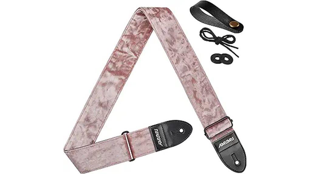 The Amumu Flocked Velvet Guitar Strap utilizes soft velvet flocking and breathable cotton, akin to a gentle reminder that true strength supports with grace.