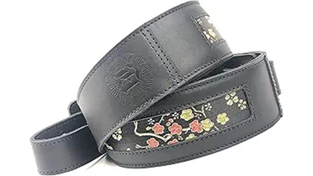 The silk inlay, delicate yet resilient, rests secure within this robust embrace, illustrating how beauty flourishes when upheld by steadfast strength. This union of materials guarantees the strap endures the demands of performance, allowing the artist to give fully without fear of failure. While this strap is expertly designed to carry the weight of an instrument, you must ensure the instrument itself is of high caliber, such as the best bass guitars, to fully complete your sonic arsenal.