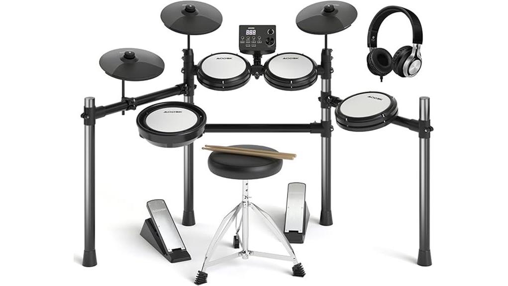 Ultimately, the AODSK Electric Drum Set is a sturdy vessel for rhythmic discipline, anchored by a foldable metal frame that offers reliable foundation, akin to the unwavering strength required in life’s journey.