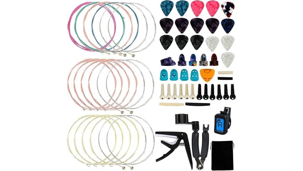 - This comprehensive 65-piece collection weighs 6.4 ounces and fosters a supportive environment for guitar maintenance and expression.