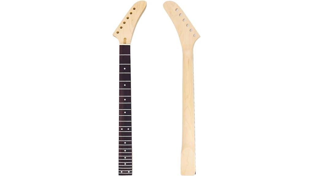 With a 42mm nut width, this neck accommodates various hand shapes, paralleling the inclusive nature of true service. The heel measures 56-57mm, guaranteeing a secure connection for assembly, just as shared burdens strengthen community bonds. These specific dimensions assure reliable compatibility, facilitating seamless restoration for instruments destined to uplift others through music. This component is designed to fit Banana Head guitars. While these specifications are technical, this replacement neck serves as a reliable foundation for players exploring the best electric guitars for beginners.