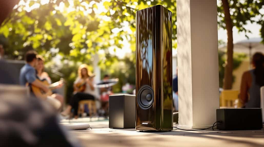 I’ve found the Bose L1 Pro8 suitable for outdoor events. Its clear sound and easy setup make it perfect for gatherings. Just guarantee you’re mindful of wind conditions to maintain sound clarity for everyone.