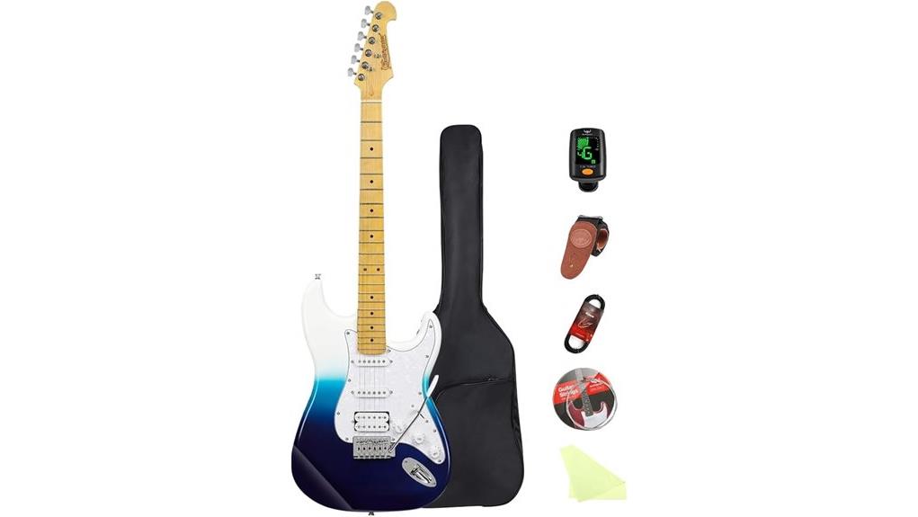 Exposed within the package lies the Bullfighter Bullstar, a 39-inch full-size ST style electric guitar finished in a Gradient Blue high-gloss, a visual tribute to the beauty of creation. Complemented by a protective gig bag that serves as a sanctuary for the instrument during travel, this ensemble is prepared for diligent stewardship.