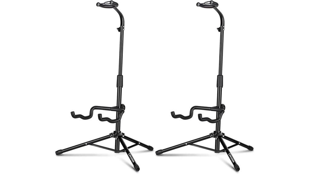- Offers adjustable height and 360-degree rotating arms to accommodate various guitar types.