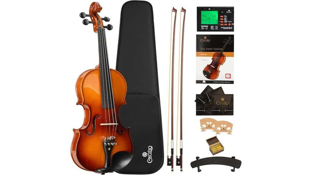 As a left-handed player, I often felt like a ship sailing against the current—much like seeking the right instrument can feel. The Cecilio 4/4 Violin Set, with its solid spruce top and maple back, not only enhances sound quality but serves as a reminder that resilience builds character. Its smooth ebony fingerboard and D’Addario Prelude strings facilitate growth in tone, inviting exploration of both music and self. What lies ahead in this journey?