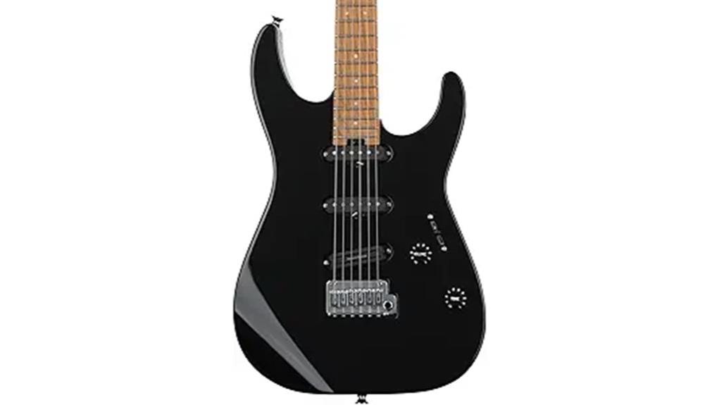 Complementing this, a hand-rubbed satin urethane finish offers a tactile connection, reminding players that true comfort often lies in simplicity. The maple neck, featuring a 12″-16″ compound radius, facilitates seamless shifts, much like the natural evolution of one’s personal journey, ensuring that every chord struck feels like a homecoming for the devoted musician. Despite its high-end specs, the guitar is user-friendly enough to be considered among the best electric guitars for beginners.