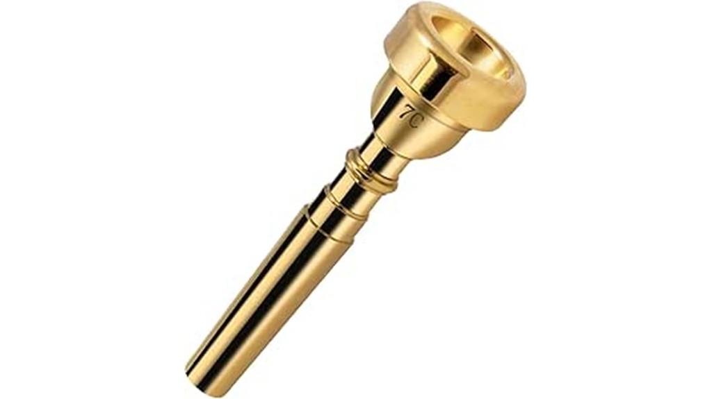 The 7C trumpet mouthpiece, crafted from gold-plated brass, embodies elegance and durability. This combination appeals to both novice and experienced musicians, fostering community through shared musical expression while ensuring longevity and reliable performance for all.