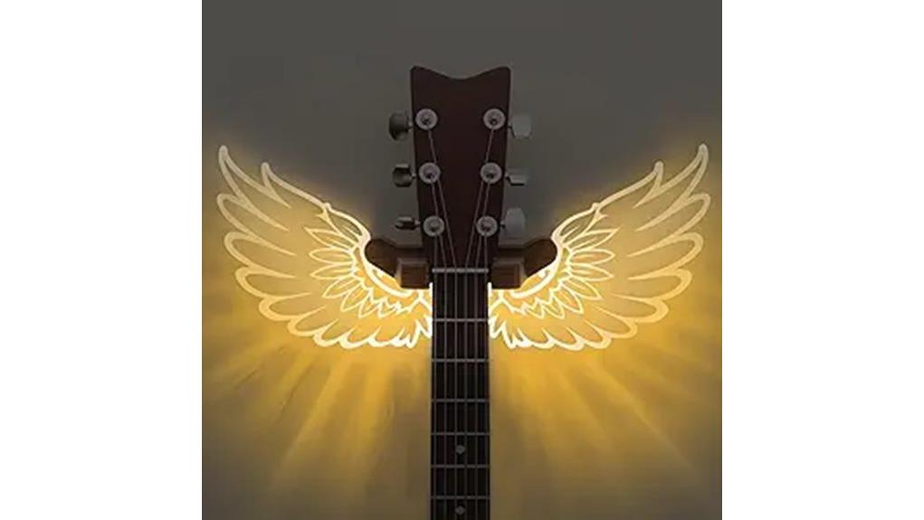 While the visual allure of the luminous angel wings invites admiration, the structural integrity of the solid wood base determines the hanger’s capacity to bear the weight of one’s musical calling. Anchored firmly, the sturdy supports guarantee security, akin to a community’s unwavering faith, providing reliable sanctuary for cherished instruments.