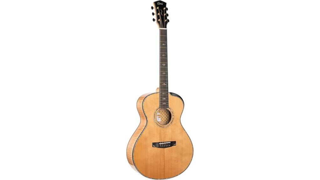 Its reinforced mahogany neck, akin to spiritual backbone, guarantees steadfast stability. While the doublelock joint maximizes resonance, facilitating connection, the hand-rolled fret edges provide comfort, allowing endless devotion. Weighing 15.43 pounds, this tool prioritizes sonic duty, proving that reliable playability is essential for those seeking to uplift others through music. However, because proper posture is crucial for endurance during long performances, the physical weight of an instrument must be carefully managed by the player. Contrary to the misconception that quality demands a higher price, this instrument demonstrates that the best acoustic guitars can provide exceptional value without sacrificing performance.