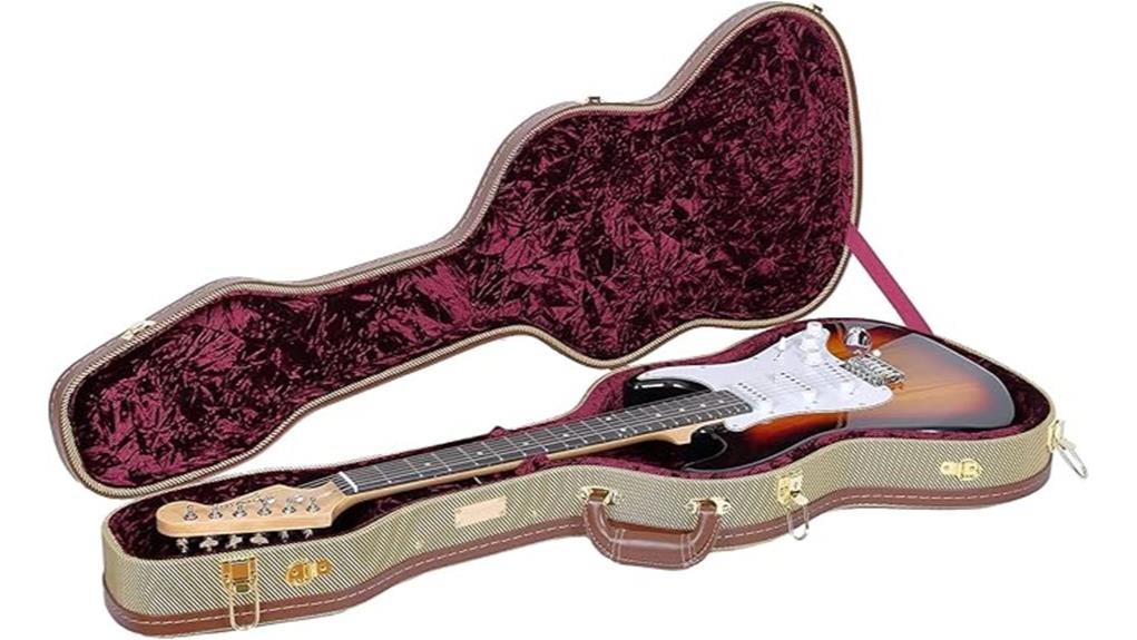 Its 40.9-inch interior length cradles the instrument, akin to how a supportive community nurtures individual potential, ensuring a precise, secure fit for service. Verifying specific body dimensions remains essential, a humble practice of stewardship that honors the tools used to create harmony. These electric guitar reviews often highlight the importance of protective gear for maintaining value. While this case suits many classics, players might consider the best Fender electric guitars for other compatibility needs.