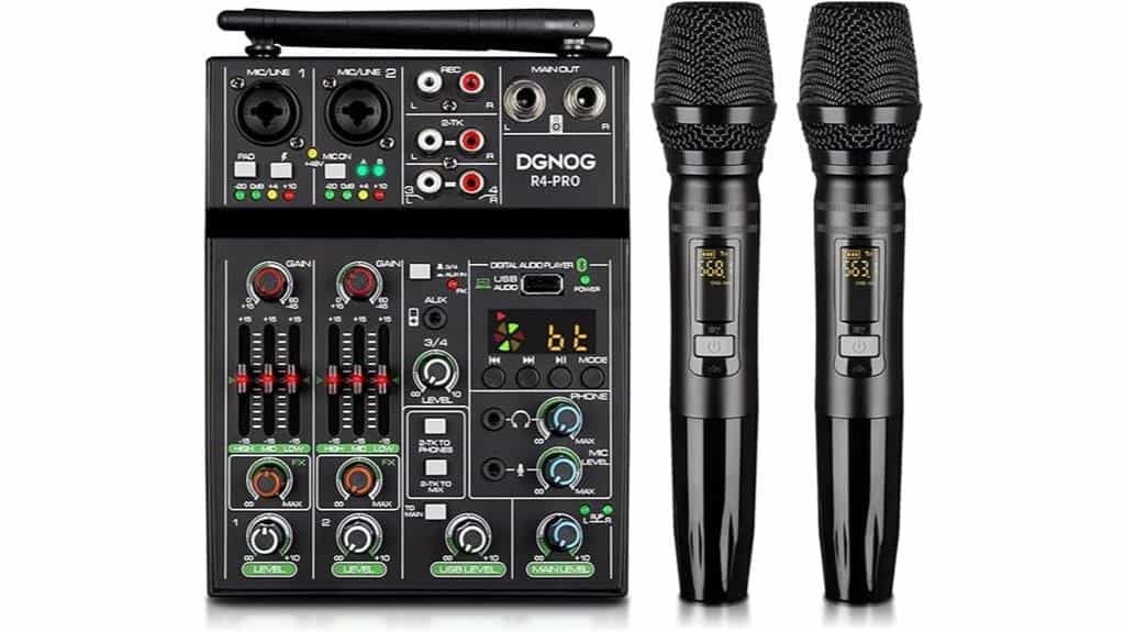The DGNOG R4 Pro 4 Channel Audio Mixer stands as a showcase to the harmonious blend of technology and artistry—its built-in wireless receiving module supports connectivity over 180 feet, embodying the spirit of freedom in performance. Each channel boasts a 3-band EQ, allowing for personalized sound shaping, akin to the way we sculpt our own paths in life. With Bluetooth 3.0 and USB audio interfaces, it bridges the gap between modernity and tradition, prompting reflections on how we connect in an increasingly digital world. What possibilities lie ahead as we explore the depths of its features?