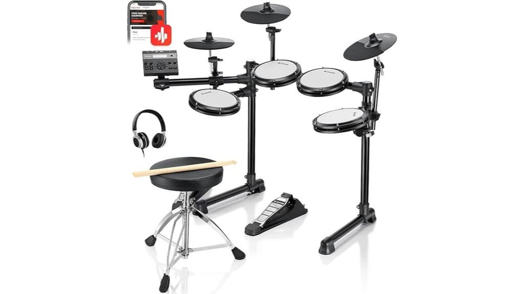 Its premium 7-piece setup, featuring high-density mesh drumheads, provides an acoustic feel, reminding us that perseverance leads to mastery, echoing life’s lessons of dedication and service to others.
