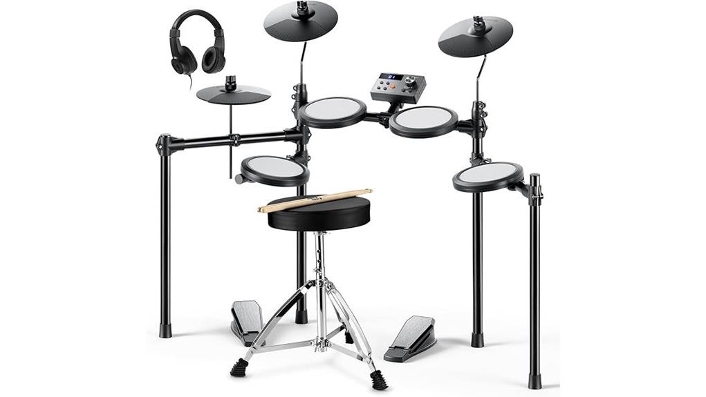 This kit, with its 7-piece configuration and 15 kits, serves the novice faithfully. The responsive mesh heads, akin to life’s resilient surfaces, foster authentic growth, while silent mode honors communal peace. The 40 free Melodics lessons, acting as a guide for diligent practice, encourage users to develop their God-given talents. Ultimately, this collapsible, durable set creates a harmonious space for learning.