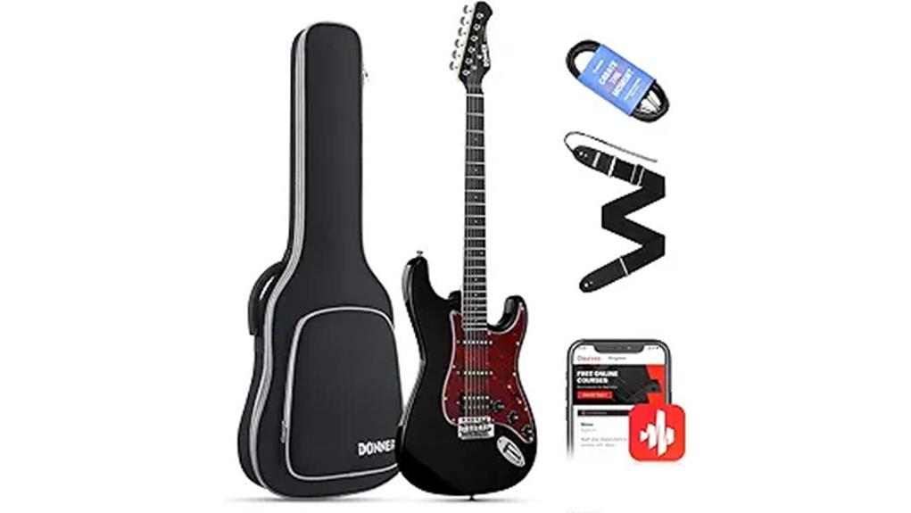 - The Donner DST-200 features a sturdy poplar body and smooth Canadian maple neck with a C-shaped profile for comfortable, stable playability.