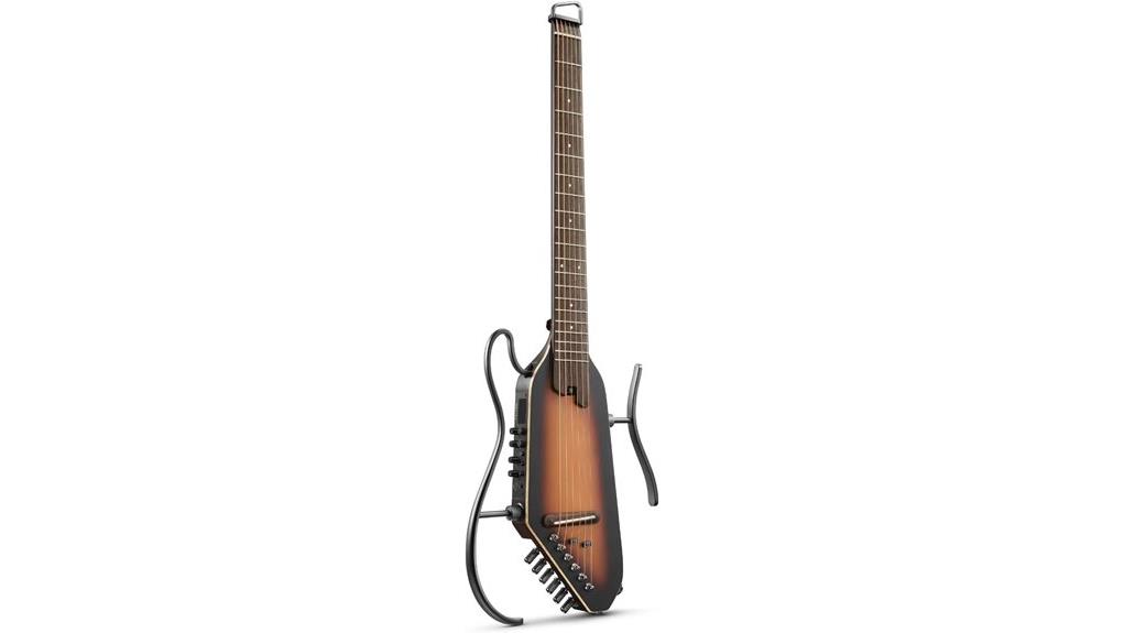 - Features a lightweight, minimalist headless design with a solid mahogany neck for maximum portability and structural integrity.