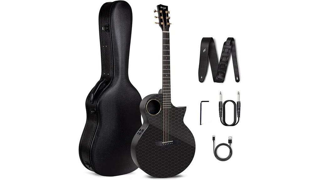 Opening the deluxe hard-shell case reveals the Enya X4 PRO, an instrument forged from 95% purity carbon fiber composite that offers a profound meditation on resilience. With structural stability impervious to humidity or temperature, this 41-inch cutaway, weighing merely 6.3 pounds, remains steadfast, a reminder that unwavering reliability is essential for those serving others in shifting environments. This all-carbon fiber construction provides an incredibly consistent playing experience that far surpasses traditional wooden best electric guitars. While many players begin their journey searching for the best acoustic guitars, few find an option as uniquely resilient as this carbon fiber model. The included leather strap and Phosphor Bronze strings prepare the musician for immediate action, ensuring readiness. Accompanied by a 30-day guarantee, and one-year warranty, this bundle provides peace of mind, allowing the caregiver to focus entirely on their noble calling.