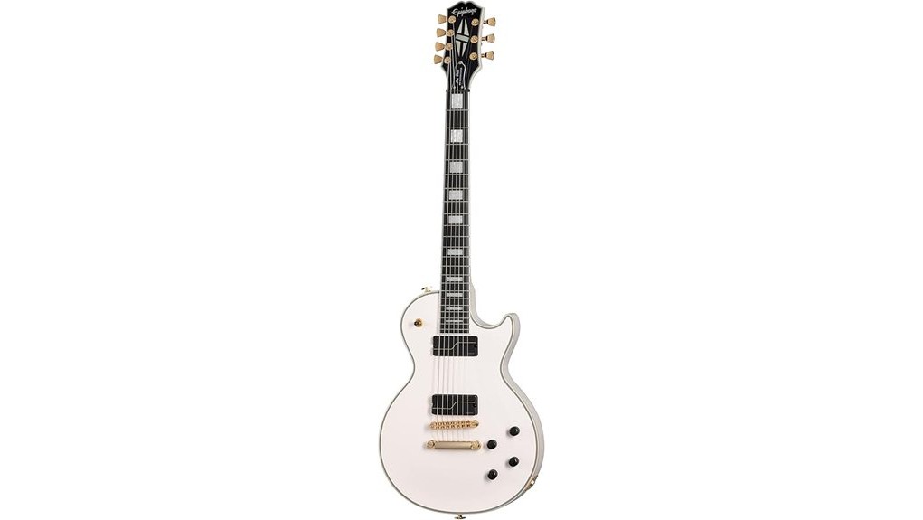 A sanctuary of tonewood and intention, the Epiphone Matt Heafy Les Paul Custom Origins 7 String cradles a maple-capped mahogany body—its layered resonance not only amplifying sustain and harmonic depth but echoing the strength found in foundational balance, akin to the quiet resilience of ancient trees rooted firmly in fertile soil. The smooth, bone-white finish reflects light like morning frost, a reminder that clarity often follows struggle. Precision-carved contours and tight-seam binding honor craftsmanship, just as consistency honors service. Grover Rotomatic tuners guarantee steadfast tuning, a parallel to daily discipline in purpose-driven lives. Every detail, from heel joint to headstock, speaks of integrity—built not for spectacle, but for those who play not to impress, but to uplift. The guitar’s ebony fingerboard contributes to its superior tonal clarity.