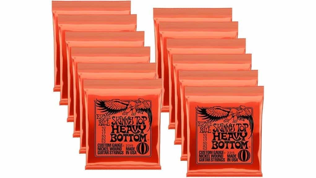 - The .010 to .052 Skinny Top/Heavy Bottom gauges facilitate rhythmic depth and effortless high-note bending.
