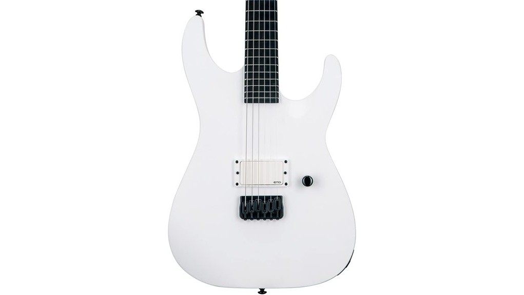 A seamless union of form and function defines the playing experience of the ESP6 String LTD M-HT Arctic Metal, where the 3-piece maple neck-engineered for stability and crowned with a macassar ebony fingerboard-offers a pathway both responsive and true, akin to disciplined hands entrusted with a sacred charge.