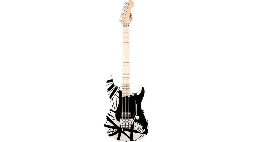 - Direct-mounted EVH humbucking pickups and a Floyd Rose tremolo bridge provide raw electrical sound and unwavering tuning stability.