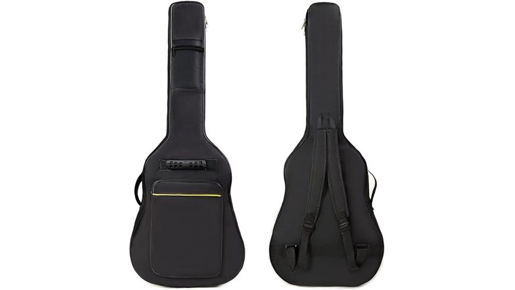 - This bag features 0.35-inch thick padding and a water-resistant Oxford exterior to securely protect your guitar during transit.