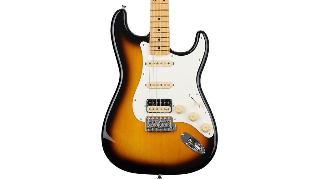 - Solid basswood body with a two-tone sunburst finish offers visual appeal and stable construction.