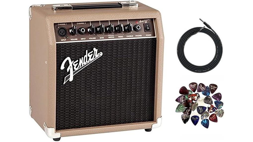 A standard instrument cable provides the necessary physical connection for sound, while supplemental picks offer reliable tools for musical expression. These items facilitate the sharing of acoustic joy, allowing the musician to focus entirely on serving their audience through clear, resonant amplification. Since this setup is ideal for those starting out, it is compatible with best acoustic guitars for beginners. While this bundle provides the necessary accessories, the amplifier itself is designed to project the rich, nuanced sound of best acoustic guitars with clarity and warmth.