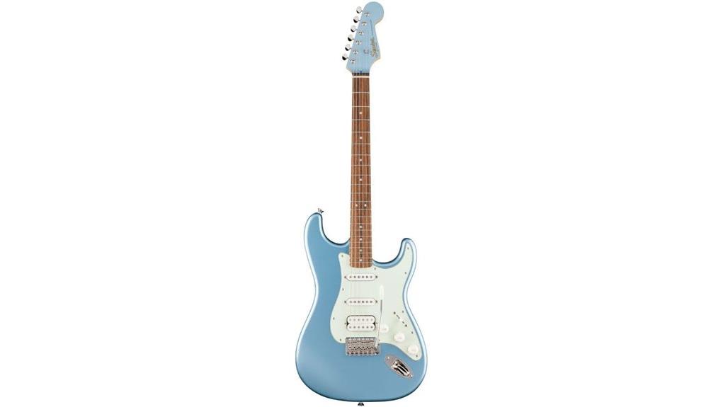 - Ice Blue Metallic finish with vintage-tint neck and matching headstock captures classic Fender aesthetics.