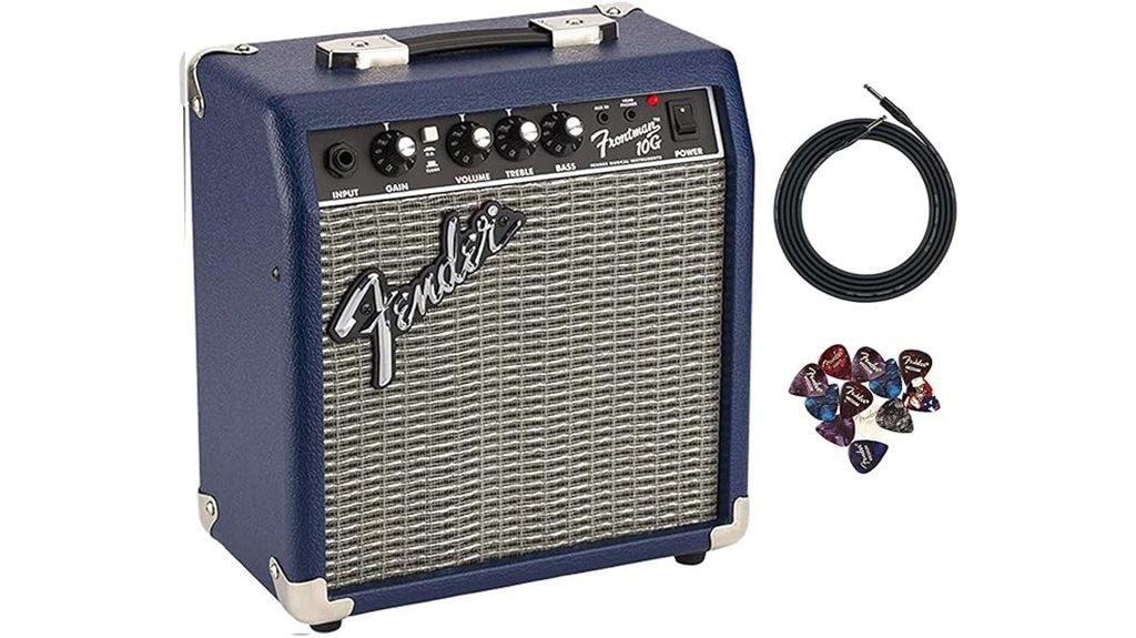The Fender Frontman 10G Amplifier embodies a harmonious blend of technology and artistry, offering 10 watts of power that resonates with both beginners and seasoned musicians—a reminder that even the smallest tools can create profound soundscapes. Its tube-emulated overdrive and impressive bass response invite players to explore their creativity, much like life’s journey encourages growth through exploration. As one contemplates its practical features, they might wonder how this compact amplifier can elevate their musical expression.