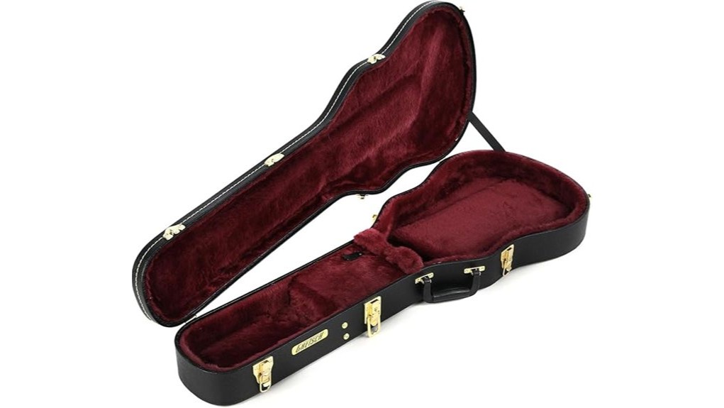 - Plush-lined interior cushions the guitar and prevents scratches during transport.