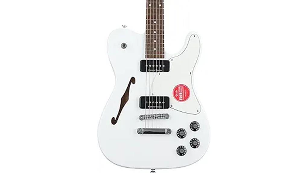 - A semi-hollow ash body produces a resonant, airy tone that remains feedback resistant even at high volumes.