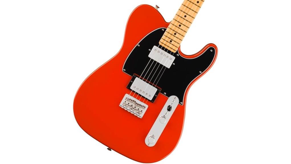 An embodiment of timeless craftsmanship, the Fender Player II Telecaster HH presents itself in a striking Coral Red finish that belies the rugged structural integrity within, anchored by a solid alder body chosen for its balanced resonance. The Modern “C”-shaped maple neck, akin to a steady hand, offers stability, while rolled fingerboard edges encourage effortless movement.