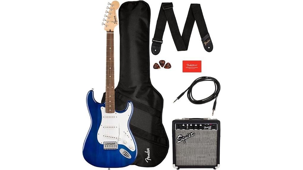 - The all-inclusive pack features a Squier Sonic Stratocaster, a 10G amplifier, and essential accessories, providing a complete starter kit for new musicians.