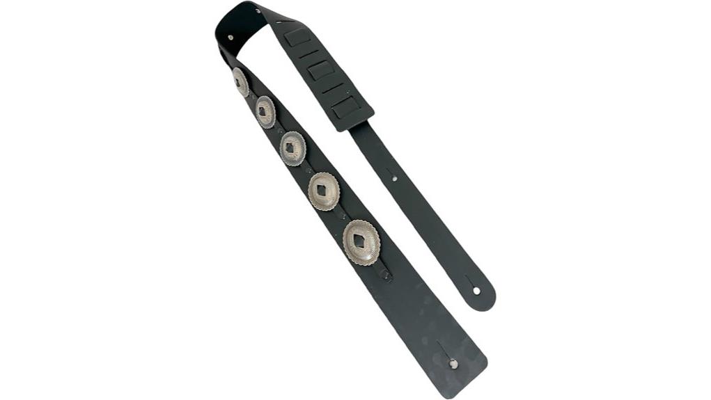 Akin to a soul’s unique journey, the antique silver or copper conchos, complemented by industrial nailhead rivets, create a rhythmic visual cadence. This isn’t merely an accessory, it is a declaration of identity, a symbol for those seeking unity in shared craftsmanship. The aesthetics invite connection, grounding the musician in a tradition of unwavering, communal excellence. It serves as a fitting complement to iconic Ibanez models known for their precision. Its sturdy design provides the necessary support for the best electric guitars for beginners, ensuring that the instrument remains secure and balanced during play.