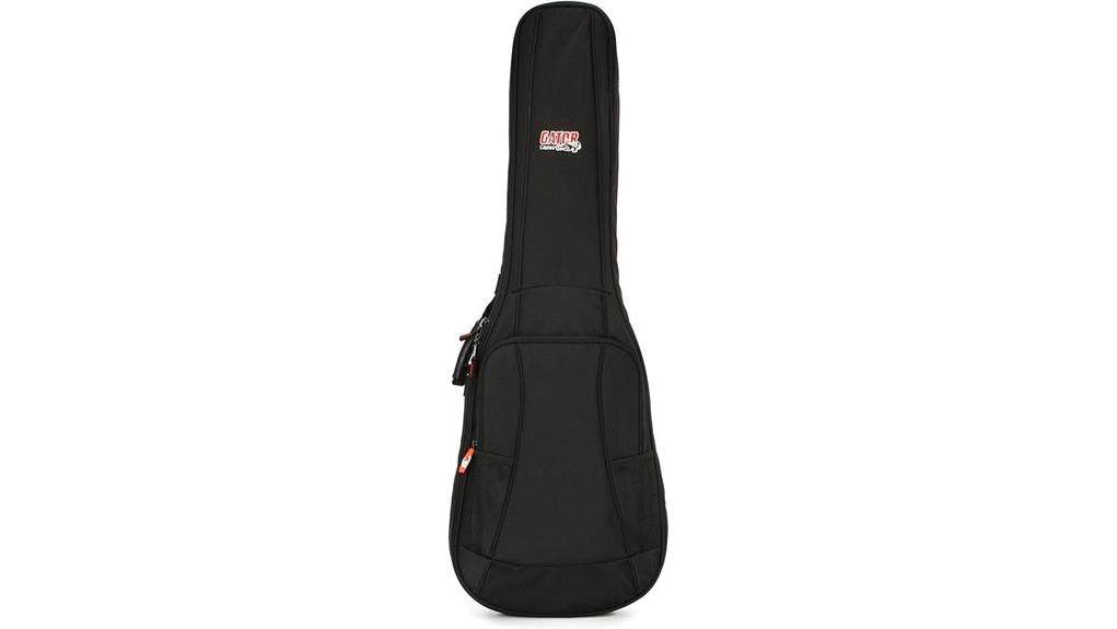 As a musician navigates the precarious journey from rehearsal to the stage, the Gator Cases 4G Series Gig Bag serves as a steadfast guardian, employing 20mm of GFLEX padding to cradle the instrument much like a steadfast faith supports the soul during life’s unexpected tremors. This robust nylon shell, reinforced at critical headstock and bridge zones, offers 2.95 pounds of security, a reminder that true strength often requires a light touch. The bag’s protection ensures that whether you travel with best electric guitars or acoustic axes, your gear remains safe from harm. With patent-pending pick-clip zipper pulls acting as small totems of readiness, the large exterior pocket holds essential gear, ensuring the artist remains prepared for any divine opportunity. However, the specific padding provided by the 4G Series gig bag may not offer the level of defense required for world tours.