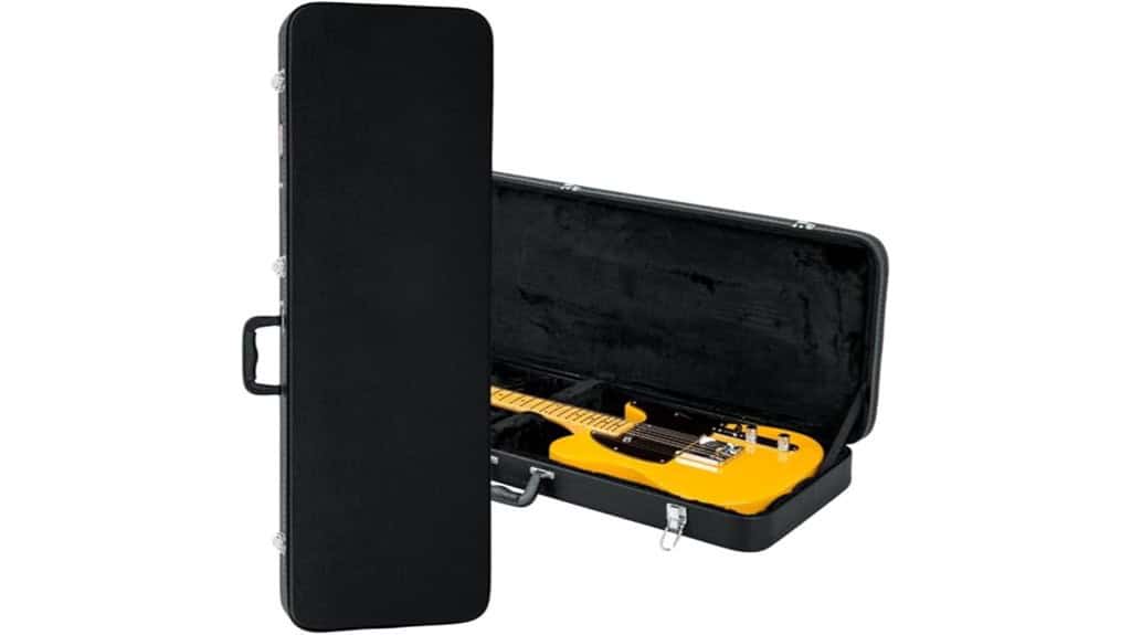 This case is compatible with standard electric guitar models, particularly Fender Stratocaster and Telecaster styles, ensuring a secure fit. Its design prioritizes protection, making it an excellent choice for musicians seeking reliable storage solutions.