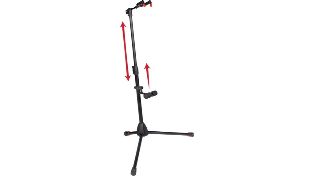 The GFW-GTR-1500 employs self-locking yokes to secure one’s instrument, a mechanism akin to the steadfast nature required for spiritual grounding. With adjustable heights from 25 to 42 inches, this frame accommodates various sizes, reminding the user that flexibility fosters growth.