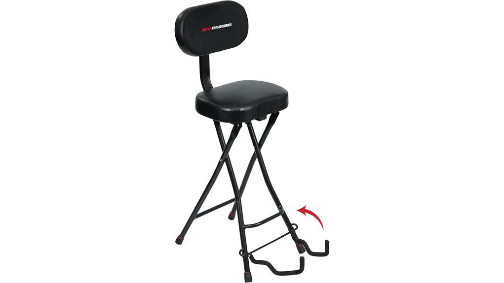 The Gator Frameworks Guitar Seat unifies form and function through powder-coated steel, offering a 300lb capacity akin to the grounding strength of ancient oaks.