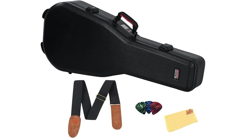 The Gator GTSA-GTRDREAD flight case is crafted from military-grade polyethylene, a material renowned for its resilience, much like the steadfastness required in life’s trials, this rugged composition guarantees structural integrity while shielding your instrument from the unforeseen impacts of travel.