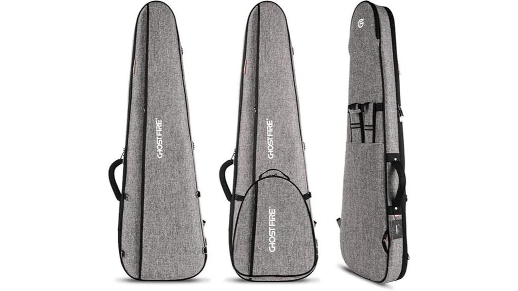 Though no single case can cradle every instrument in existence, the GHOSTFIRE bass gig bag answers the call with purposeful precision – available in specialized models tailored to fit Precision, Jazz, LP, and SG-style guitars, guaranteeing each contour aligns with intent, much like a shepherd measuring the fold with attentive care. The interior’s plush pillow cradles the neck with model-specific support, while reinforced PE board maintains shape under load – akin to steadfast character shaped by trial. Each tailored fit, a reminder that service begins with exactness; precision honors purpose. Compatible variants guarantee protection isn’t assumed but designed – measured cuts, intentional seams – reflecting the care one gives when equipping others for the journey ahead. The bag’s compatibility ensures it can safely hold popular bass designs, including those inspired by best ibanez electric guitars.