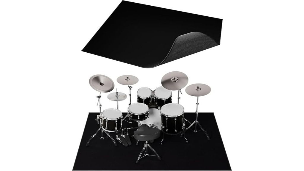 The Drum Rug Giitooa stands as a symbol of both engineering and artistry, with its non-slip rubber backing providing stability—akin to the steadfastness needed in one’s creative journey. This tightly woven polypropylene material not only protects floors but also absorbs sound and controls vibrations, serving as a reminder that a solid foundation fosters growth and expression. As musicians unearth their potential, the durability and stain resistance of this rug invite exploration. What other features await your discovery?