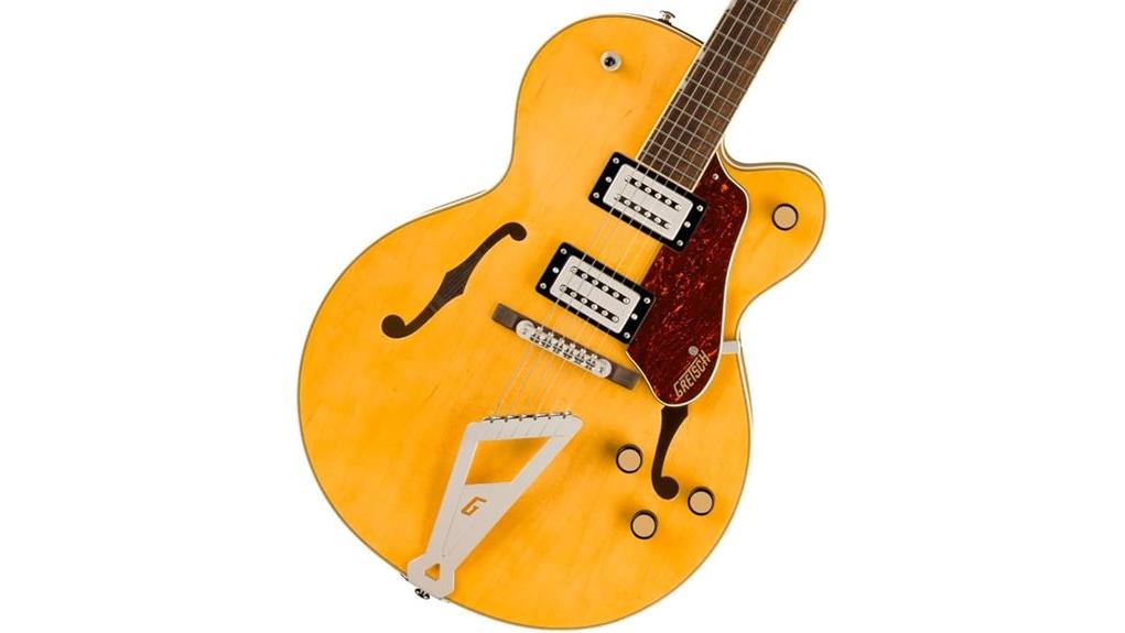 The Gretsch G2420 Streamliner Hollowbody anchors its resonant maple body in a radiant Village Amber finish, a visual warmth that invites the musician to seek internal clarity.