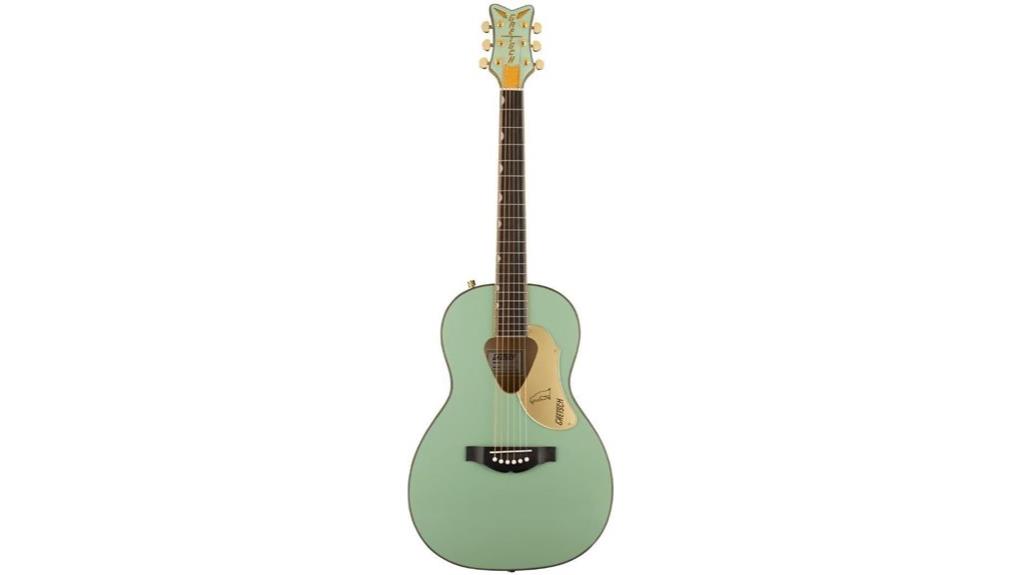 - Design Elements: Distinctive aesthetics include a triangular soundhole and a fixed rosewood bridge that complement the standard parlor size.