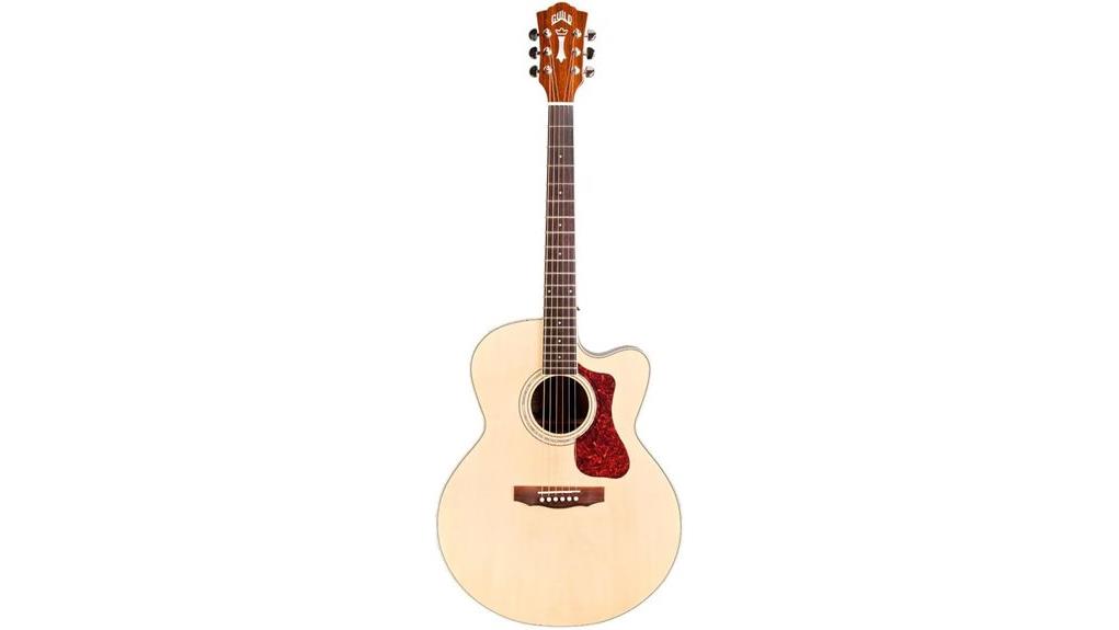 Although this model features a cutaway for upper-fret access and electronics, the Guild F-150CE does not compete with the best electric guitars.