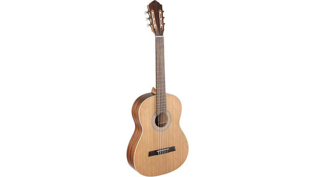 Its 25.5-inch scale, a precise framework for growth, allows students to build dexterity, while the mahogany back and sides provide structural integrity akin to a supportive community. Endorsed by the European Guitar Teachers Association, this 4.05-pound companion serves the learner faithfully, ensuring the path toward mastery is walked with stability, purpose, and humble dedication.