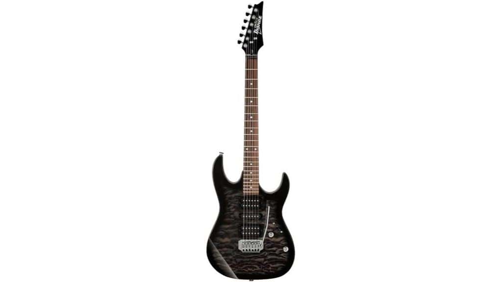 The Ibanez GIO Series GRX70QA embodies a harmonious blend of artistry and functionality, its striking poplar body and quilted maple art grain top serving as a visual representation to craftsmanship—akin to the journey of personal growth, where each layer reveals deeper beauty. With high-output Infinity R humbuckers and a versatile H-S-S configuration, this guitar offers a rich sonic landscape, inviting players to explore their creativity and express their innermost thoughts, a powerful reminder that music can be a path to understanding oneself. As one contemplates its design and features, a deeper appreciation for the artistry of sound emerges. What insights might unfold as we explore its performance further?