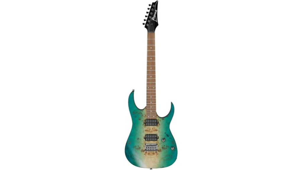 The Ibanez RG421PB emerges with quiet authority, its Caribbean Shoreline Flat finish catching light like dawn over still water.