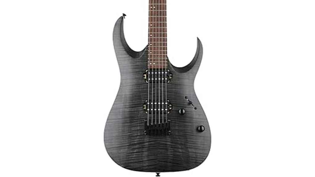 The Wizard III neck, crafted from Maple, guarantees a fast, slim profile, facilitating fluid lead lines, akin to spiritual surrender during play. Anchored by a 15.7‑inch Jatoba fretboard, the instrument provides a balanced foundation, a reminder that stability allows for creative freedom. Despite its affordability, the RGA42FM stands as one of the best Ibanez electric guitars for intermediate players seeking high-end features.