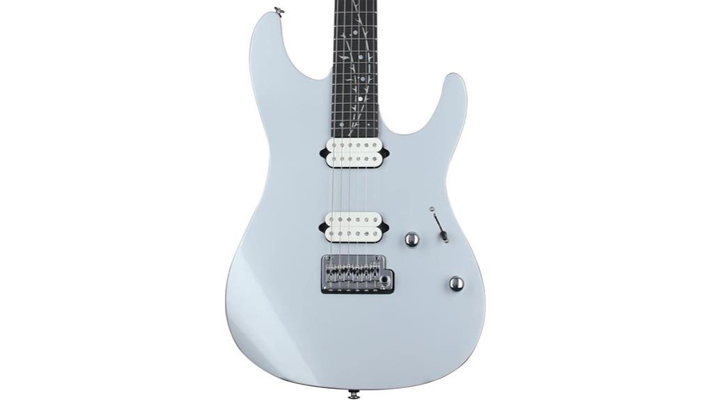 - The 12-inch-radius ebony fingerboard and 24 frets support technical precision and effortless soloing.